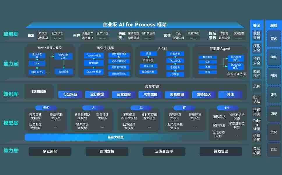 端到端的一站式AI工作空间深度融合了从企业战略规划到日常经营的全流程业务板块,,,定向解决车企内部领域多、、、部门多、、、链条长、、场景碎片化等难题,,,,支持车企快速构建以AI为核心的生产力写作体系,,,实现任务执行与AI能力的无缝集成与交互